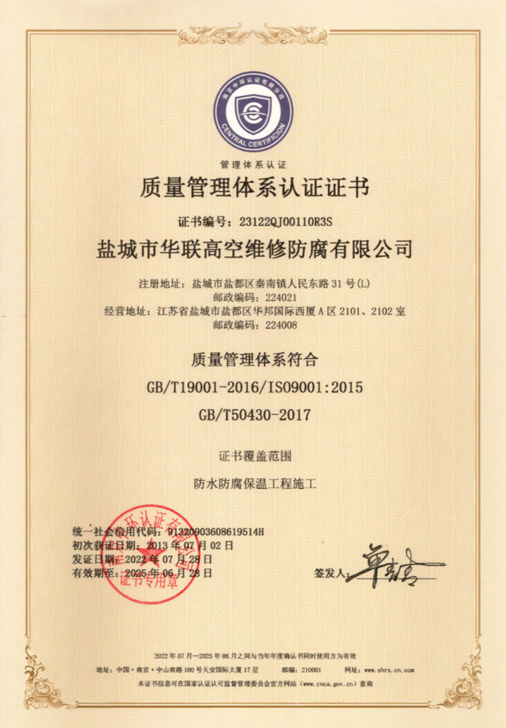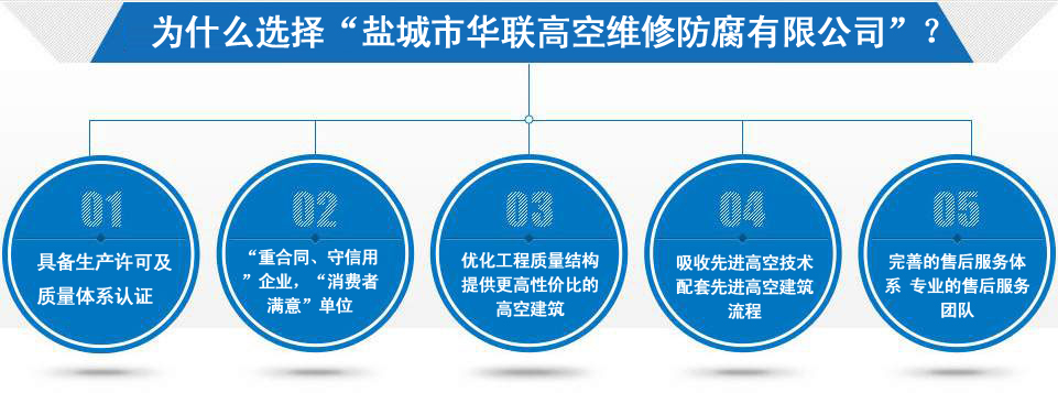 鹽城市華聯高空維修防腐有限公司始建于上世紀八十年代,系專業從事風力發電機塔筒防腐,塔筒維護,塔筒補漆,塔筒噴字等工程。不停產,不搭手架,高空懸吊施工的一級高空安全資質、一級高空防腐施工資質、二級建筑施工資質的高空建修、防腐工程、公司。現已發展集科研、設計、施工為一體的的江蘇省較大的高空建修,高空防腐施工企業;公司注冊資金3008萬元,流動資金8000多萬元;擁有高修技術科研高修工程設計、高修工程施工三大技術與施工組織體系;公司擁有一流的技術施工隊伍,其中有高級職稱36 名,中級職稱126人。具備一級防腐資質、一級安全資質及二級建筑資質,公司下轄五個分公司和十八個辦事處,為全國數百家企業解決了若干“高、大、難”的特殊工程項目,填補了我國建筑史上的空白。